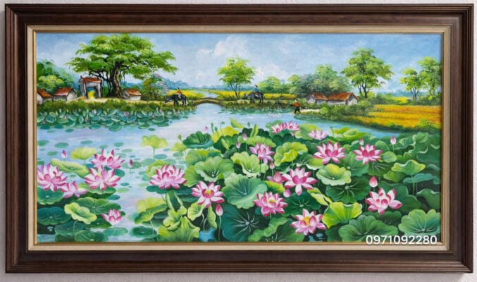 14. Tranh hoa sen phong cảnh quê