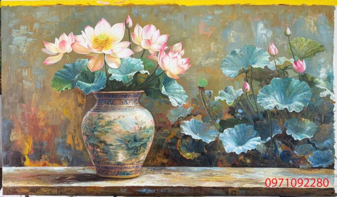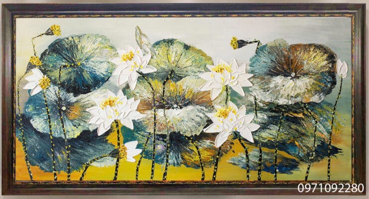 13. Tranh hoa sen sơn dầu
