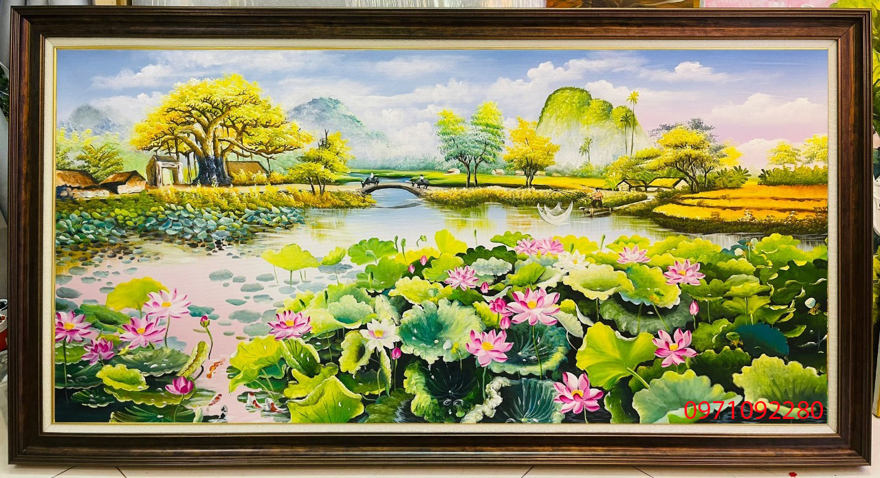 Tranh hoa sen vẽ đẹp mộc mạc thiên nhiên yên bình