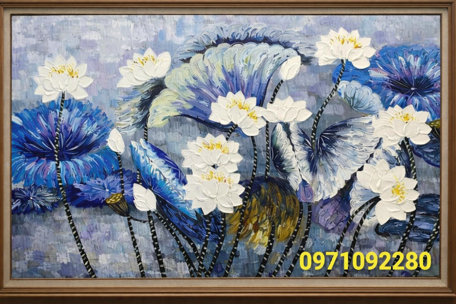 Hoa sen từ lâu đã được xem là biểu tượng của sự thanh cao, thuần khiết và ý chí vươn lên trong cuộc sống. Dù sống trong bùn nhưng hoa sen vẫn nở rộ, tỏa hương thơm dịu nhẹ, tượng trưng cho sự trong sạch và bình an. Khi được thể hiện qua chất liệu sơn dầu, từng cánh hoa sen trở nên sống động với những đường nét mềm mại và chiều sâu nghệ thuật.