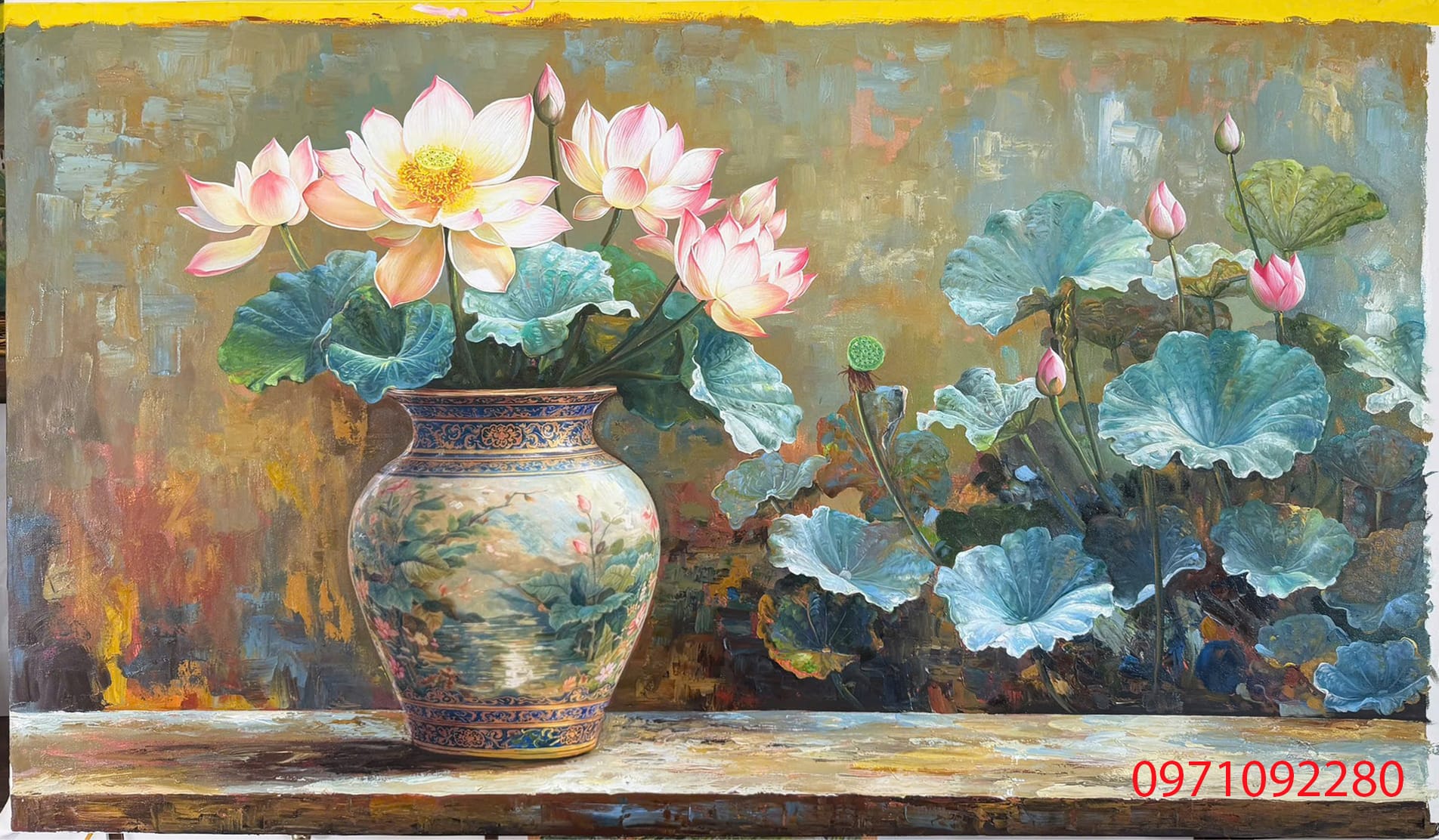 Tranh sơn dầu vẽ bình hoa sen từ lâu đã trở thành một trong những dòng tranh trang trí được yêu thích nhất bởi vẻ đẹp thanh cao, nhẹ nhàng nhưng đầy chiều sâu nghệ thuật. Không chỉ đơn thuần là một bức tranh, hình ảnh hoa sen trong bình còn mang ý nghĩa phong thủy, biểu tượng cho sự tinh khiết, bình an và thịnh vượng trong cuộc sống.